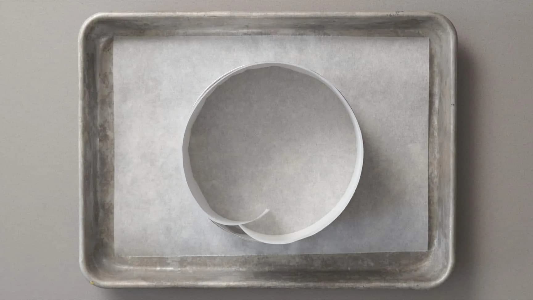 烤箱预热170℃,准备慕斯圈或是蛋糕模,侧边、底部垫烘焙纸。6吋。