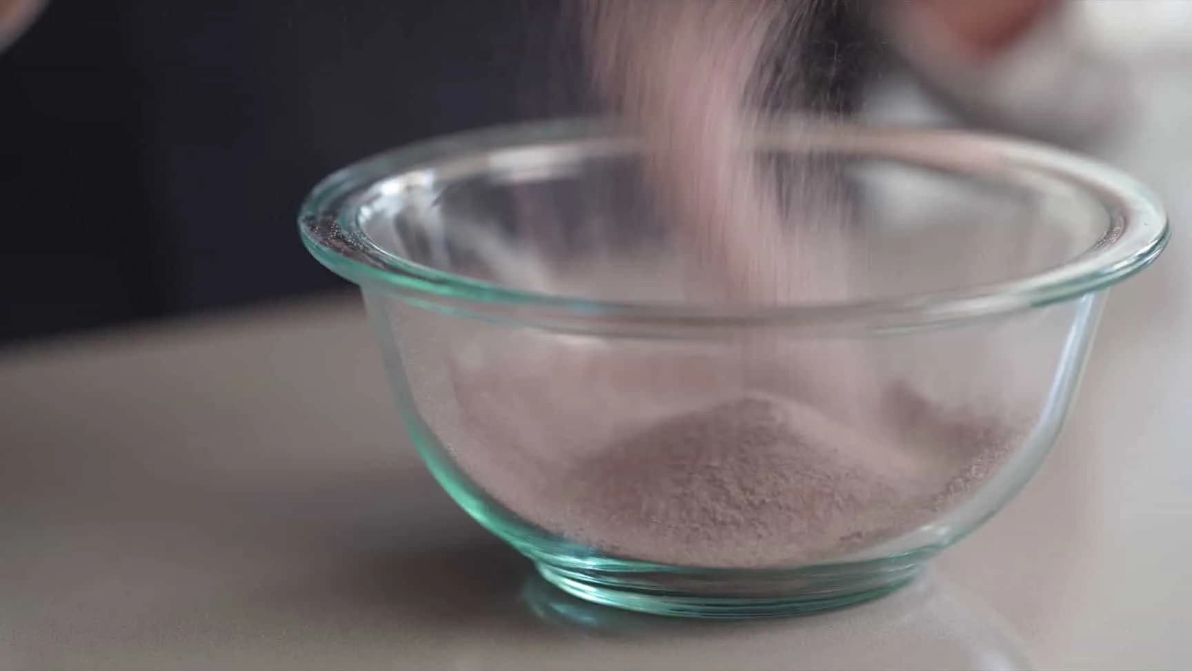 粉类、盐搅拌均匀后,一起过筛。