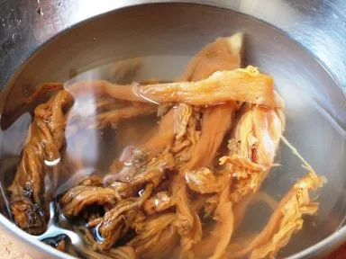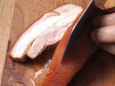 捞出后放入冷水中浸泡,切成所需加厚度。