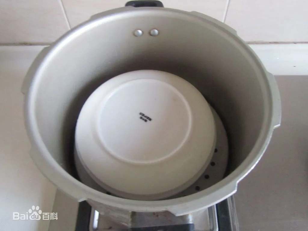 小火蒸約3小时即成,拿出来后倒扣,盘在下面。
