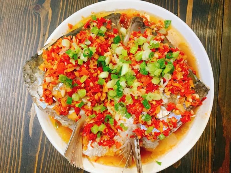 剁椒鱼头,是中国八大菜系之一——湘菜的代表菜色。该菜以大鱼鱼头,辅以湖南特色调味料剁辣椒,一同蒸熟即可。剁椒鱼头味辣、偏咸鲜,尤以湖南湘潭所作最为出名。菜品色泽红亮、味浓、肉质细嫩。肥而不腻、口感软糯、鲜辣适口。