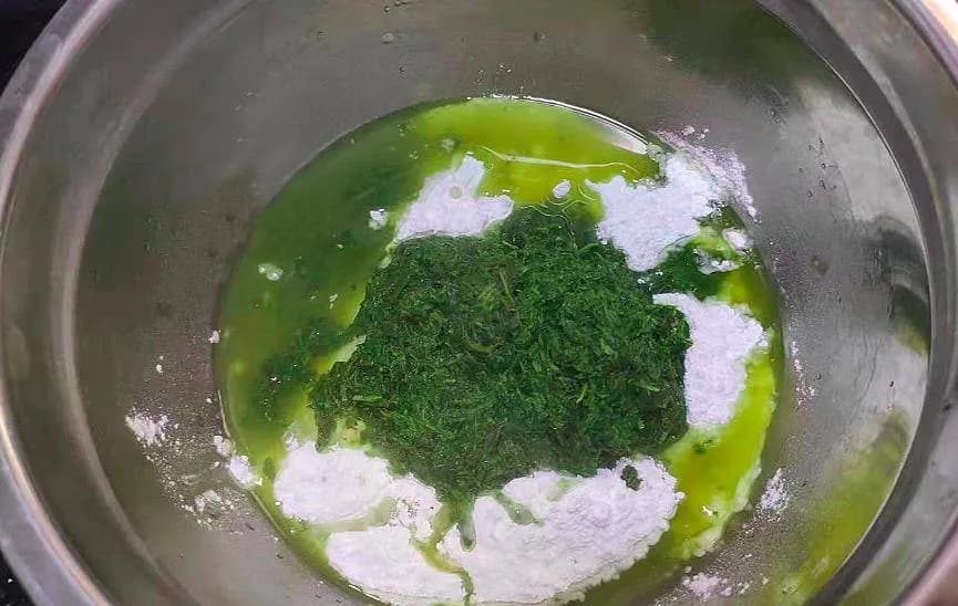“三月三,艾馍鲜”,广西许多地方都有清明吃艾粑的习俗,它也被称为艾馍。艾草采完后加碱,再在凉水中浸泡去除苦味,剁碎后和糯米粉一起揉成粉团,最常见的馅是芝麻花生加糖。