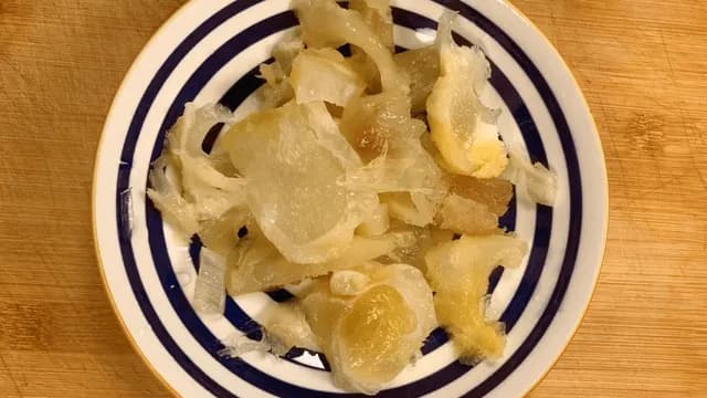 买回来的牛蹄筋大多数是冷冻的,需要放入清水中解冻融化,再充分的清洗几遍,把一些多余的杂质去掉清洗干净备用即可。
