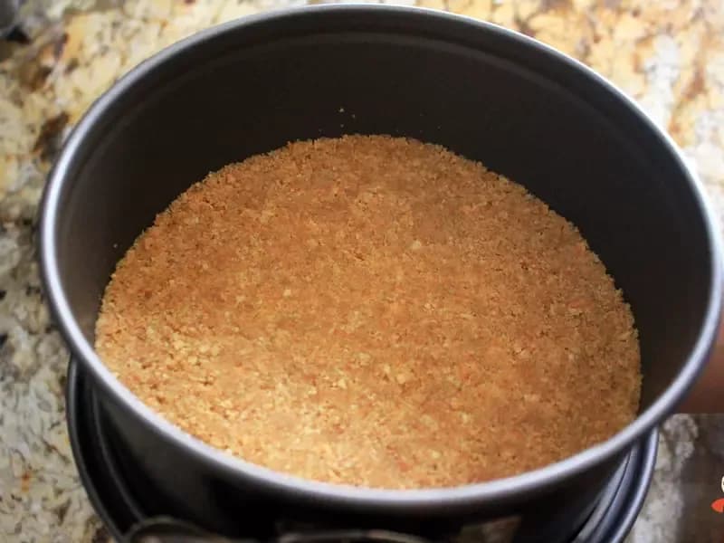 饼干碎放入烤模中压紧,盖起来放入冷藏备用。