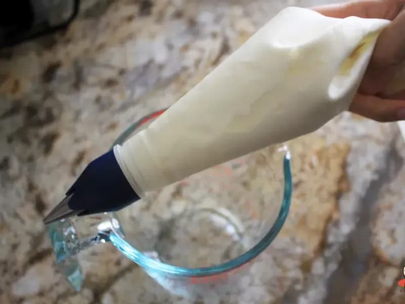 把打发鲜奶油装入挤花袋中。